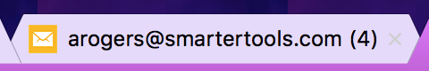 In SmarterMail 16.x, you will always see your email address and the Inbox's unread count in the browser tab, regardless of your location within the interface. This feature is enabled by default: