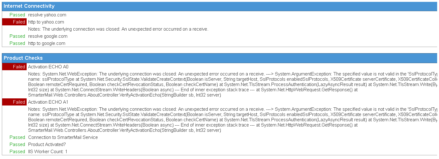 Install seemed to go ok, however running Diagnostic check afterwards displayed the following issues